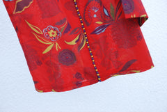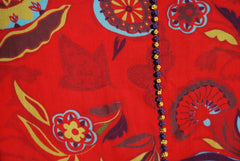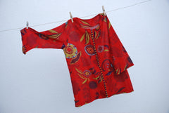 Another amazing floral fabric…I’m really pleased with how this one turned out. Hadija, my button lady in the medina here in Rabat, has helped me turn this tunic into a beautiful Moroccan frock! Little Moroccan buttons (hand-crocheted) run down the front. Two buttons sit at the end of each sleeve and there are two more at the bottom sides. Beautiful and very special!